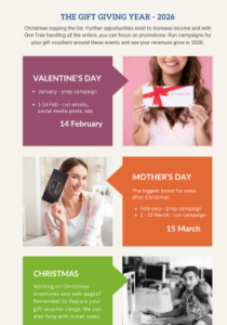 Running promotions prior to these annual gifting events is key to maximising revenue and the concepts below have been designed to save you time or prompt creative thinking.